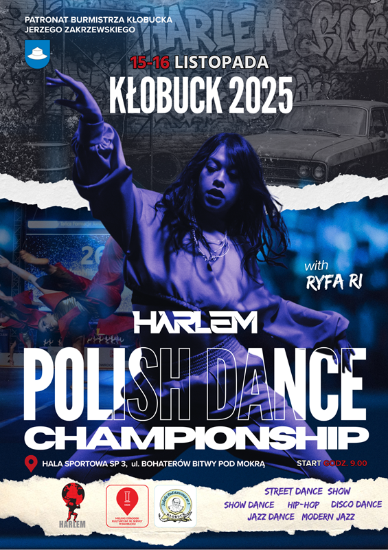 W dniach 15–16 listopada 2025 r. w Kłobucku odbędzie się ogólnopolski turniej Harlem Polish Dance Championship. To wydarzenie gromadzi tancerzy z całego kraju, prezentujących różne style – od street dance, hip-hopu, po jazz czy modern jazz.
