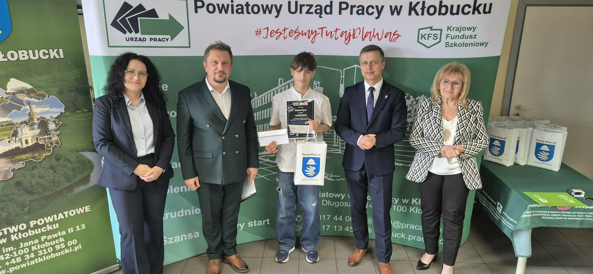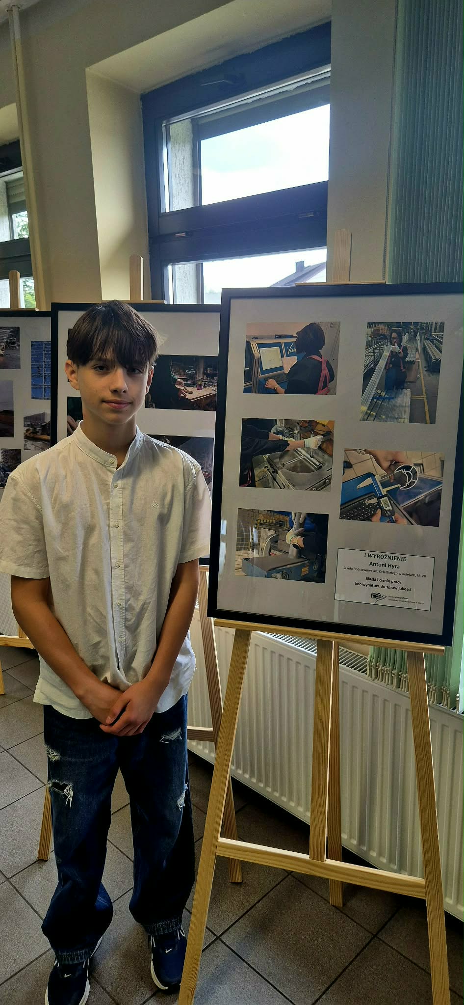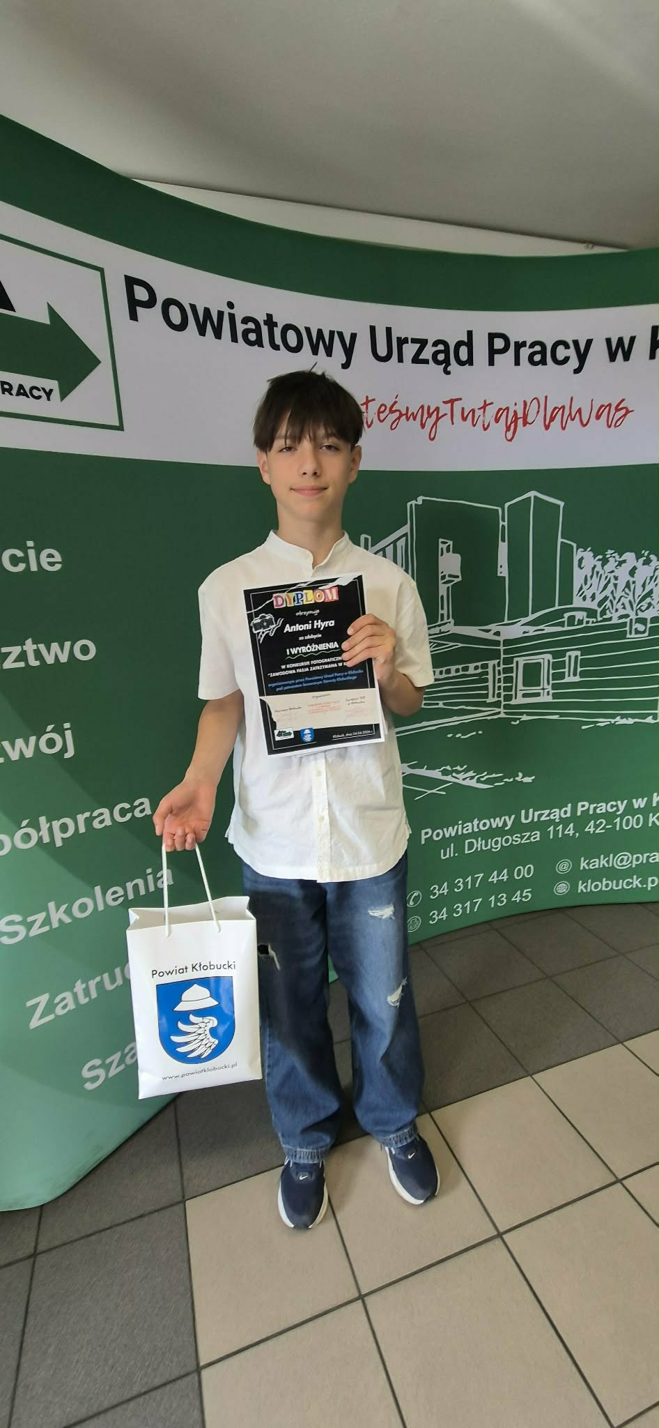 Z przyjemnością informujemy o sukcesie naszego ucznia klasy VII - Antoniego Hyry w konkursie zorganizowanym przez Powiatowy Urząd Pracy w Kłobucku. Antoni przygotował fotoreportaż fotograficzny pt. "Blaski i cienie pracy koordynatora do spraw jakości" zdobywając zaszczytne I Wyróżnienie