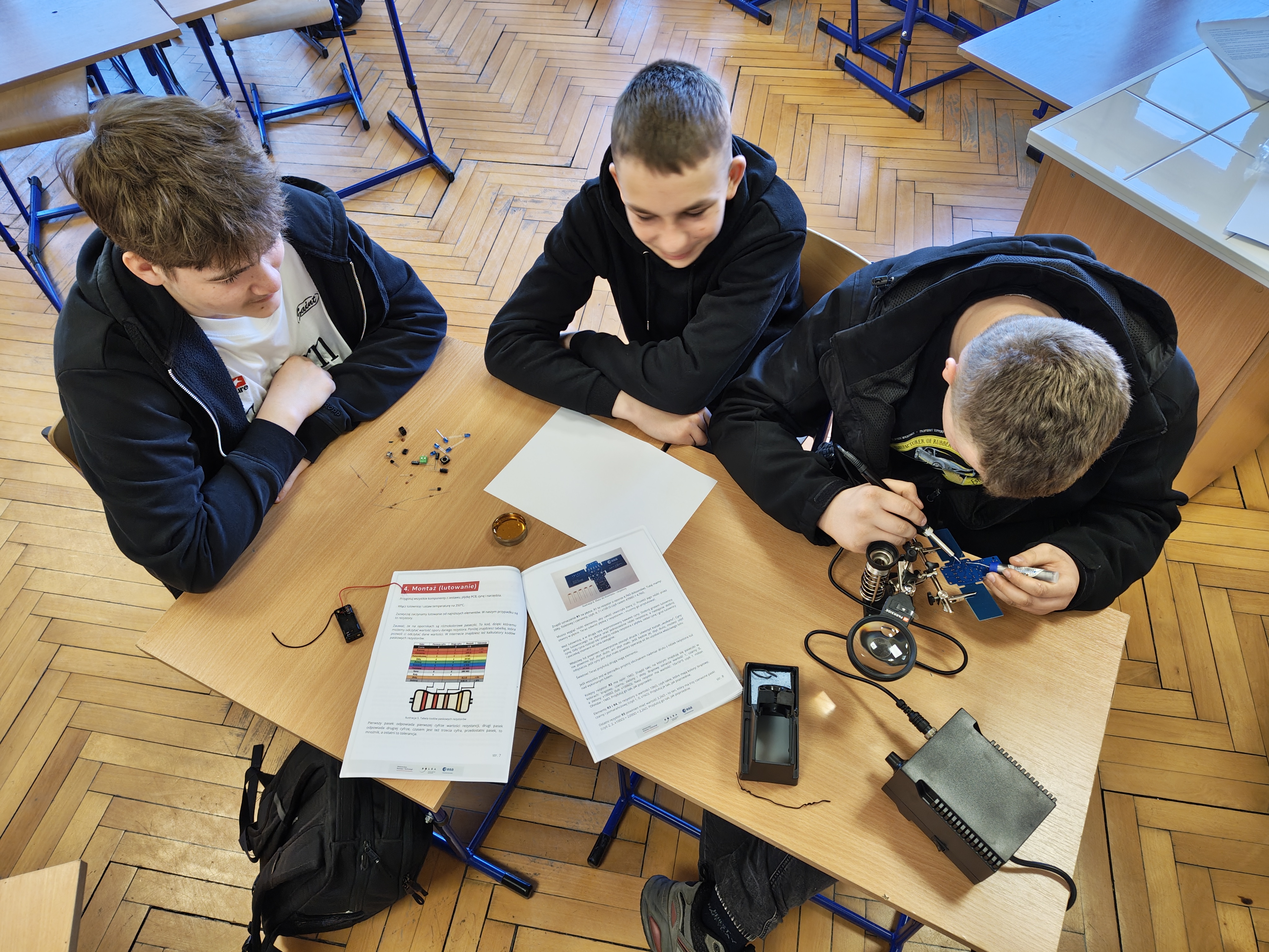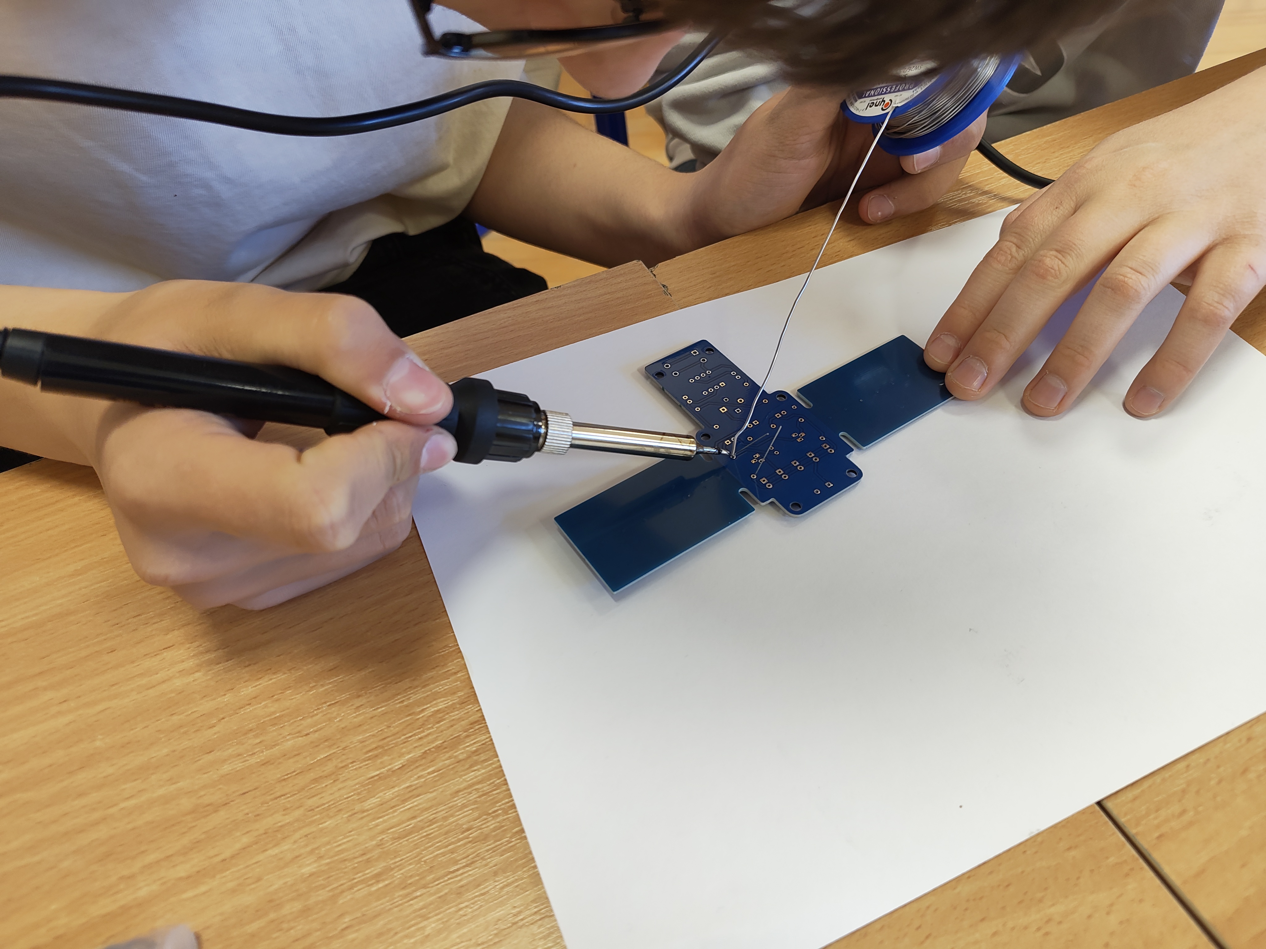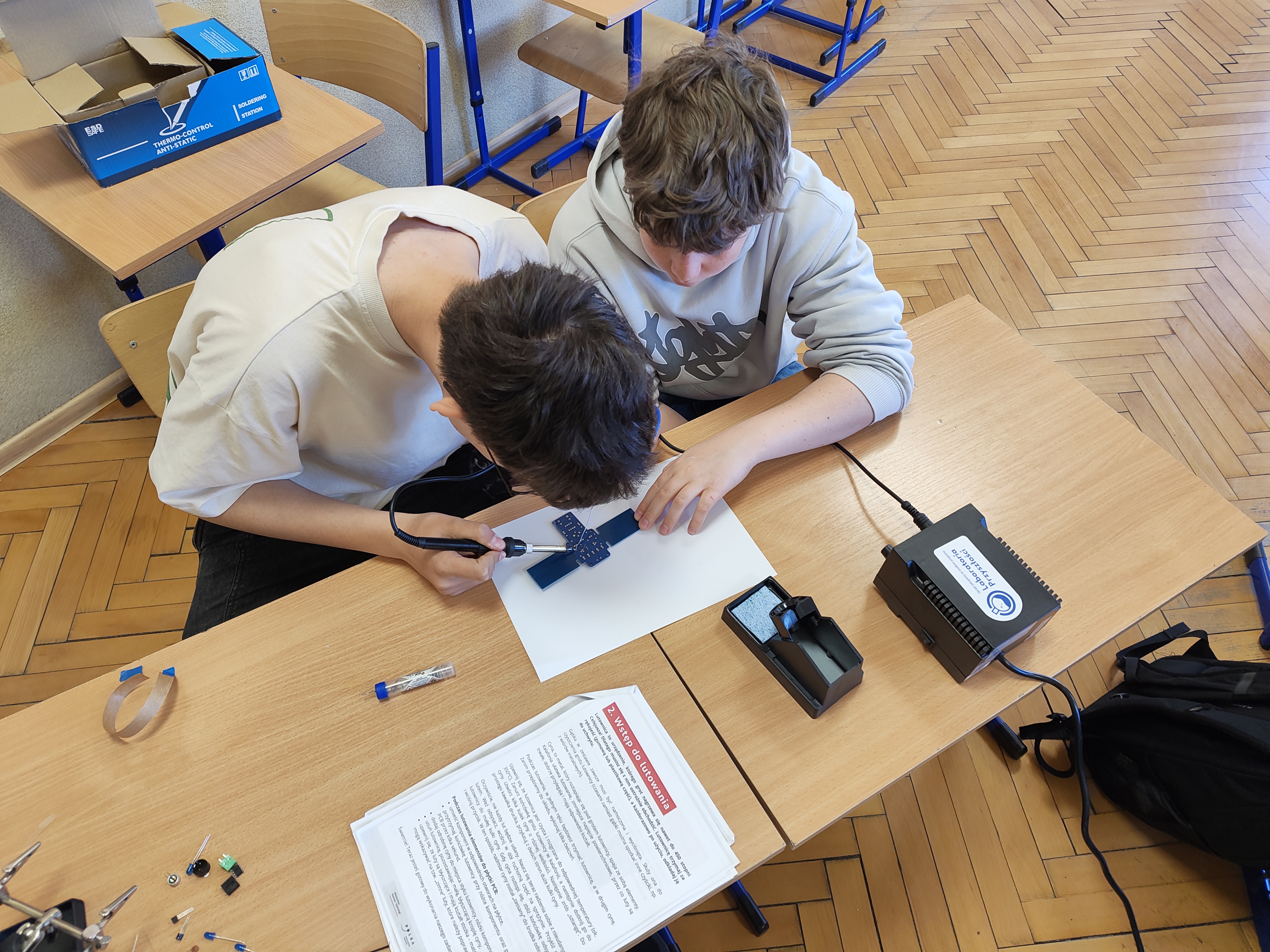 Podczas lutowania uczniowie wykazali się dużą ostrożnością i znajomością zasad bezpieczeństwa. Wiedzieli, do czego służy cyna i kalafonia, a także jak prawidłowo łączyć elementy, aby stworzyć trwały i funkcjonalny układ elektroniczny. Dzięki temu powstał prototyp, który nawiązuje do rzeczywistych technologii stosowanych w satelitach kosmicznych.