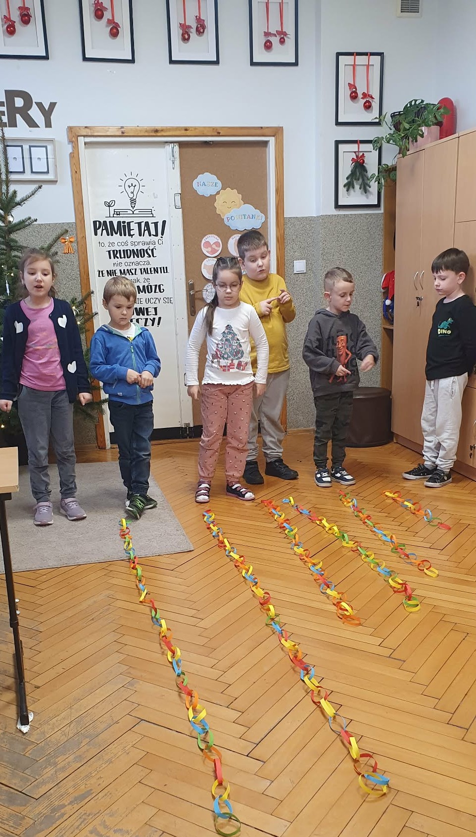 Rozpoczęliśmy przygotowania do świąt. Własnoręcznie wykonane ozdoby dodają blasku naszej choince. Wycinanie, przeliczanie, mierzenie i współpraca - to bezcenne lekcje i nauka mimochodem. Kartki świąteczne - to kolejna nauka przez zabawę - kreatywności, cierpliwości, dokładności, matematyki, pisania życzeń i wielu innych. Ileż jest radości i satysfakcji z samodzielnie wykonanych kartek świątecznych !