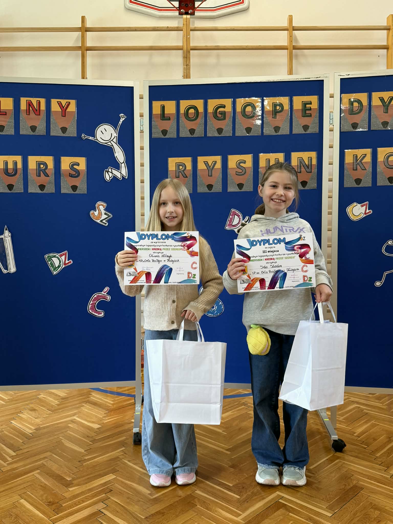 12 marca 2026 r. uczennice klasy 3 - Ida Kiedos i Oliwia Włóczyk reprezentowały naszą szkołę w Regionalnym Logopedycznym Konkursie Rysunkowym w Szkole Podstawowej im. Jana Pawła II w Konieczkach. Ida Kiedos zajęła III miejsce, natomiast Oliwia Włóczyk otrzymała wyróżnienie. Gratulujemy!