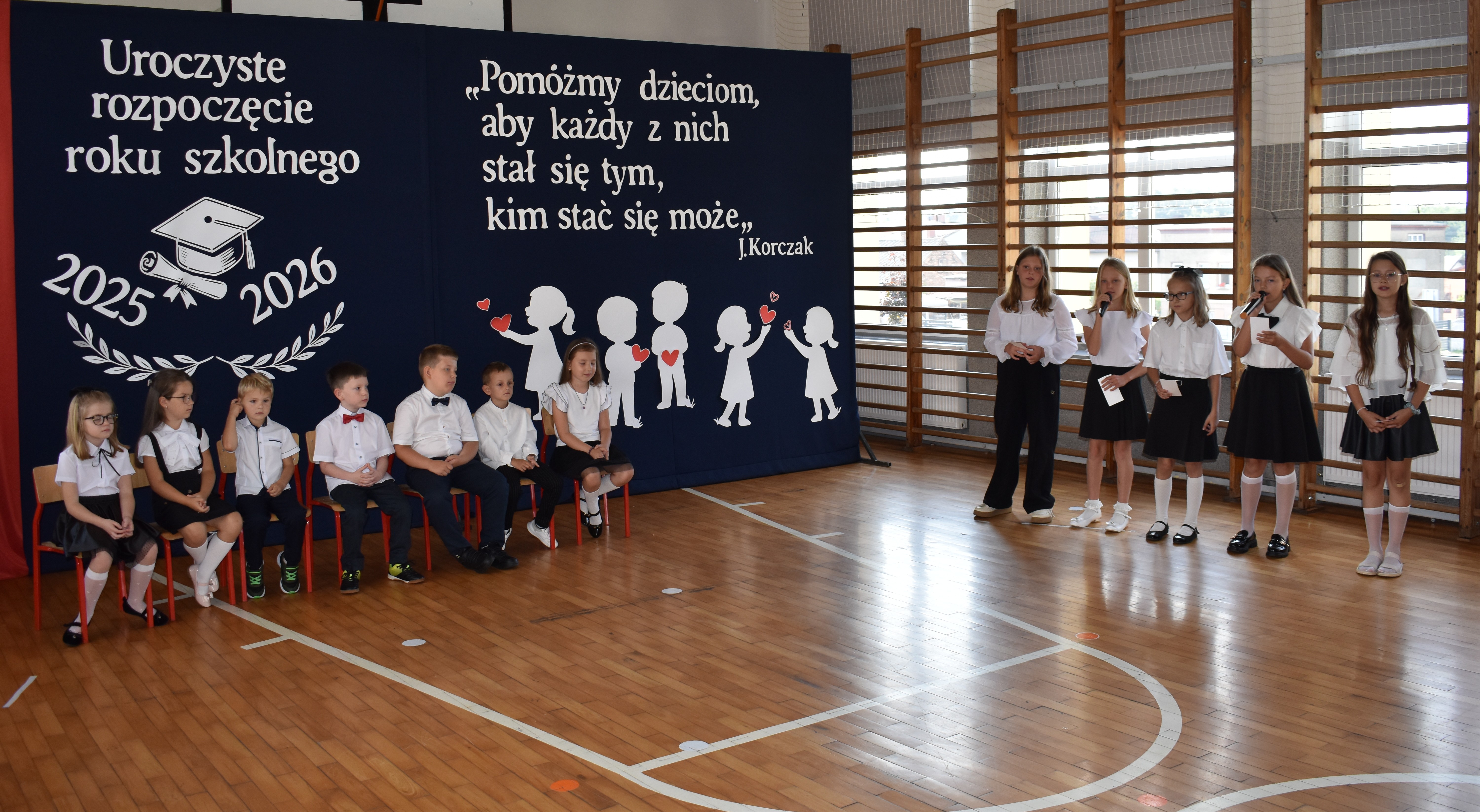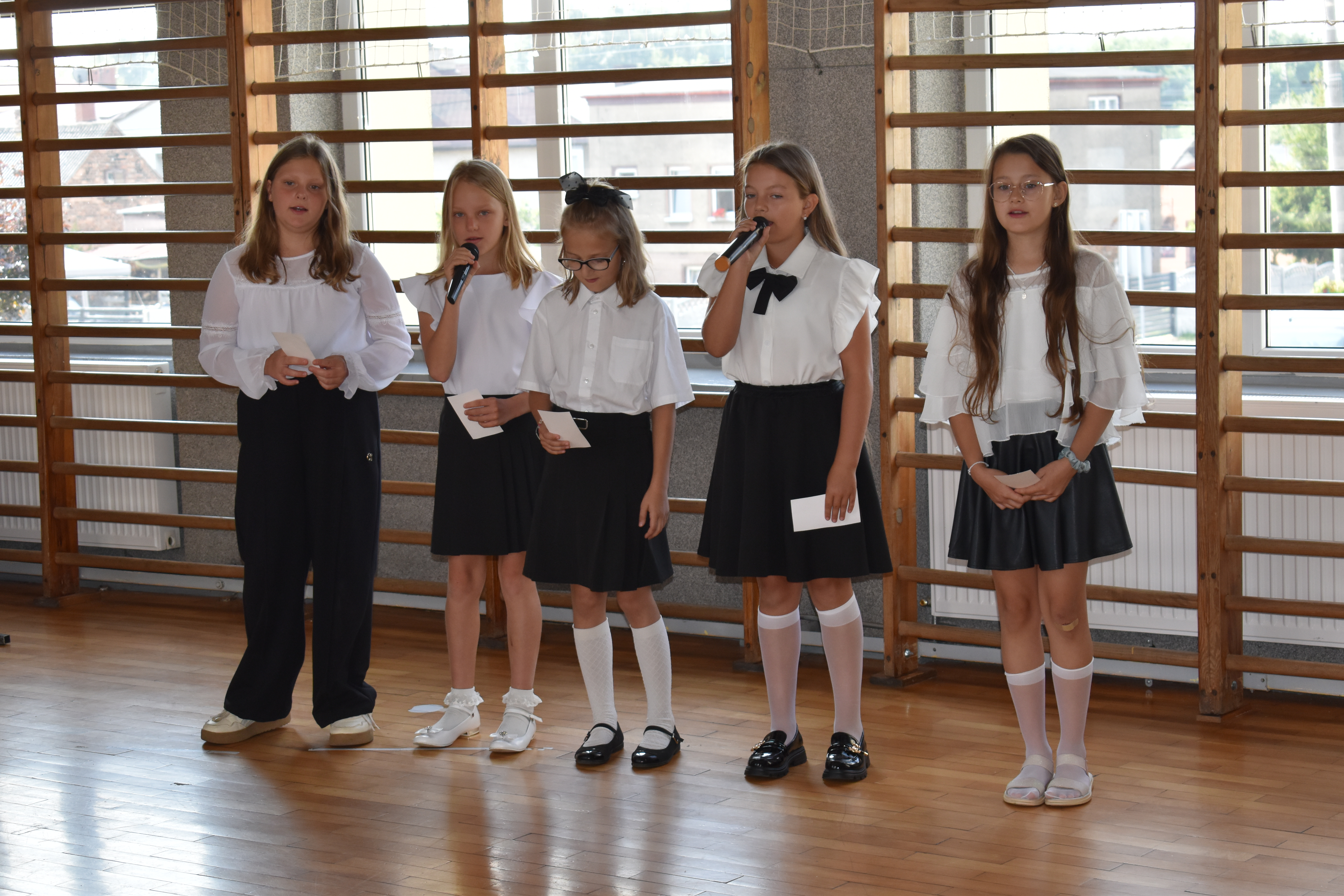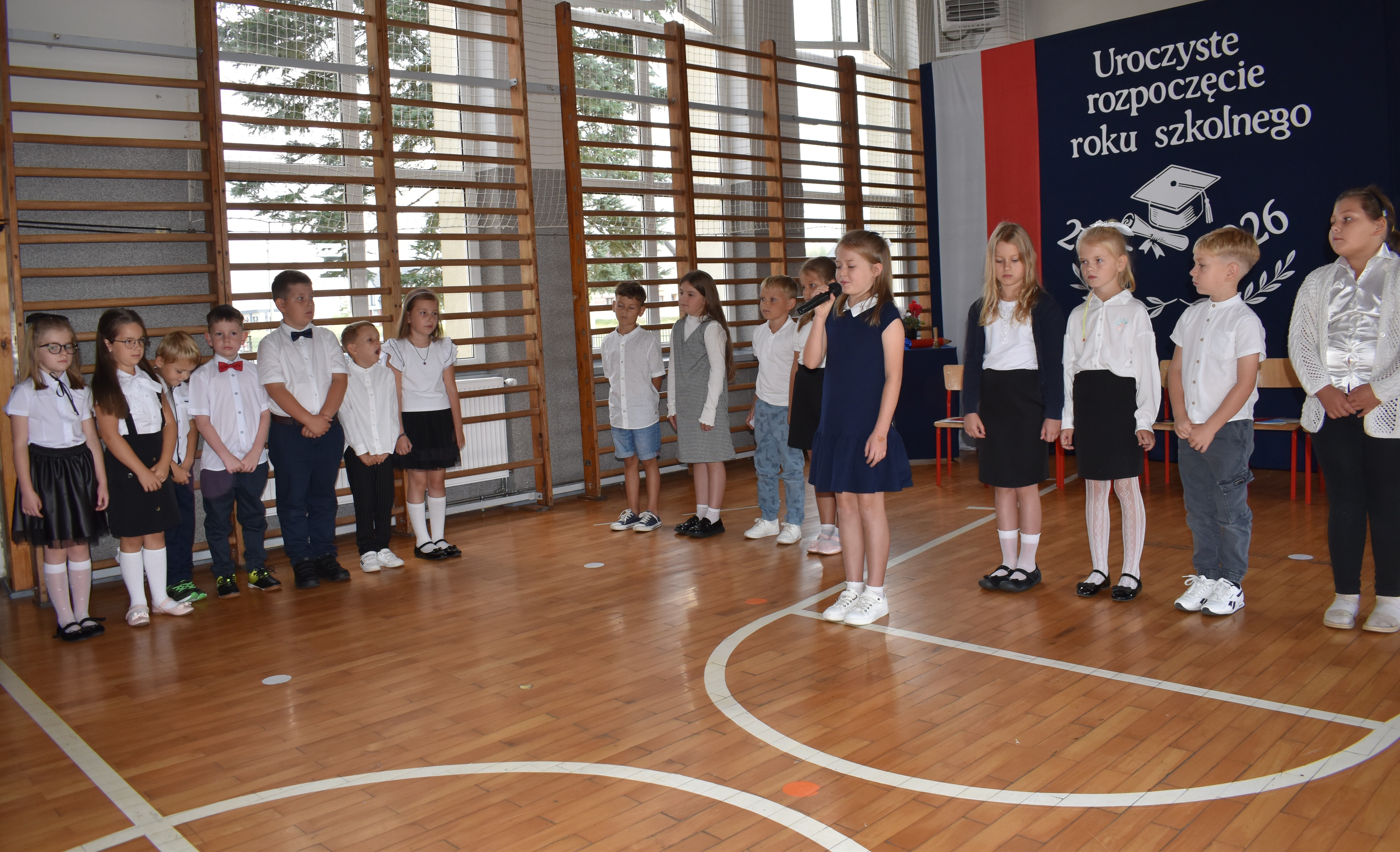 Nowy rok szkolny rozpoczął się uroczystym apelem, który odbył się na sali gimnastycznej. Zebrali się na nim uczniowie, nauczyciele, rodzice oraz dyrekcja szkoły. Po wprowadzeniu pocztu sztandarowego i odśpiewaniu hymnu narodowego najmłodsi uczniowie zaprezentowali krótki występ artystyczny. Recytowali wiersze i śpiewali piosenki czym wzruszyli oraz rozbawili zgromadzonych gości. Starsze klasy również przygotowały występ, witając pierwszaków w szkolnej społeczności i życząc im powodzenia.
