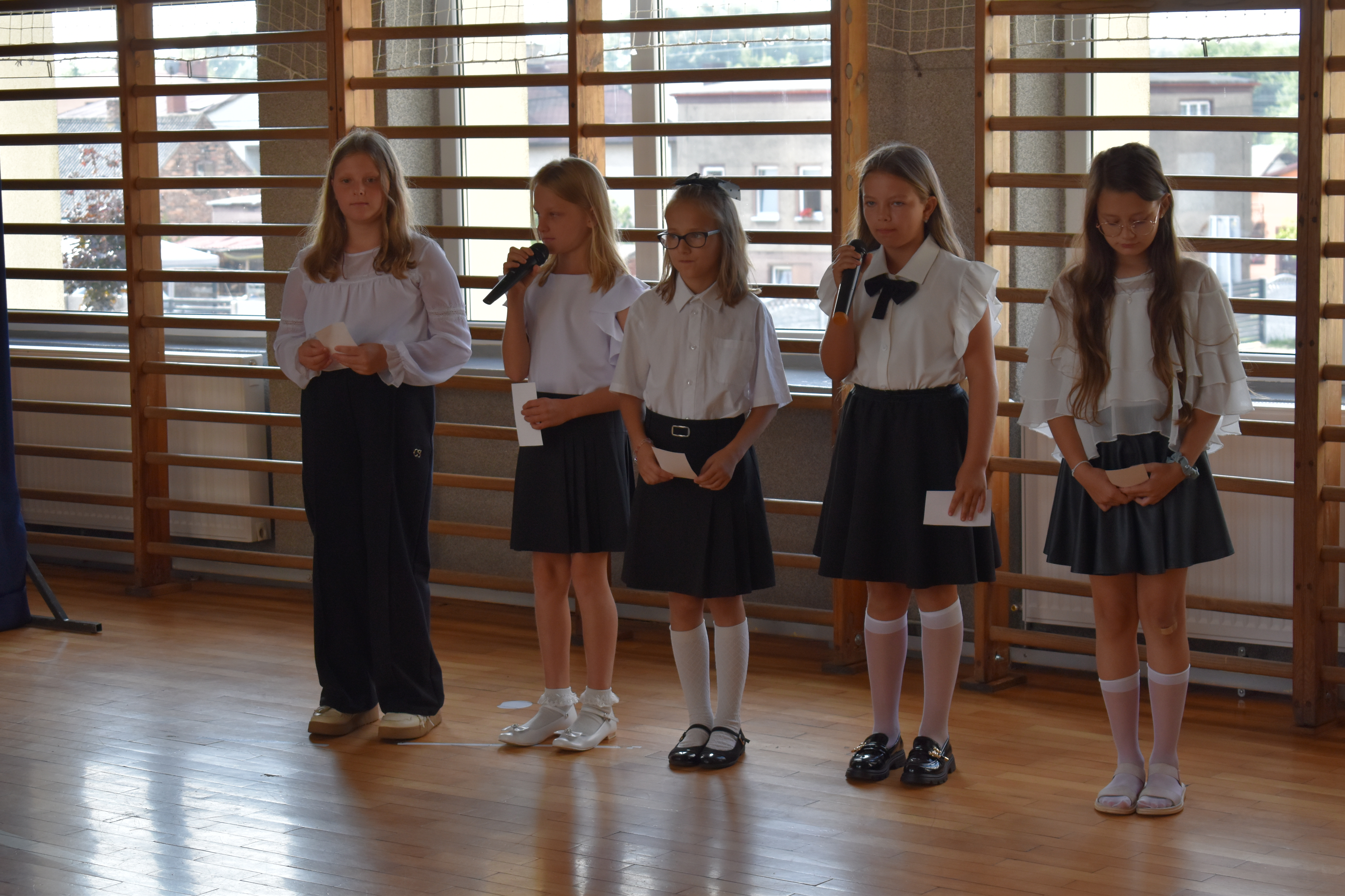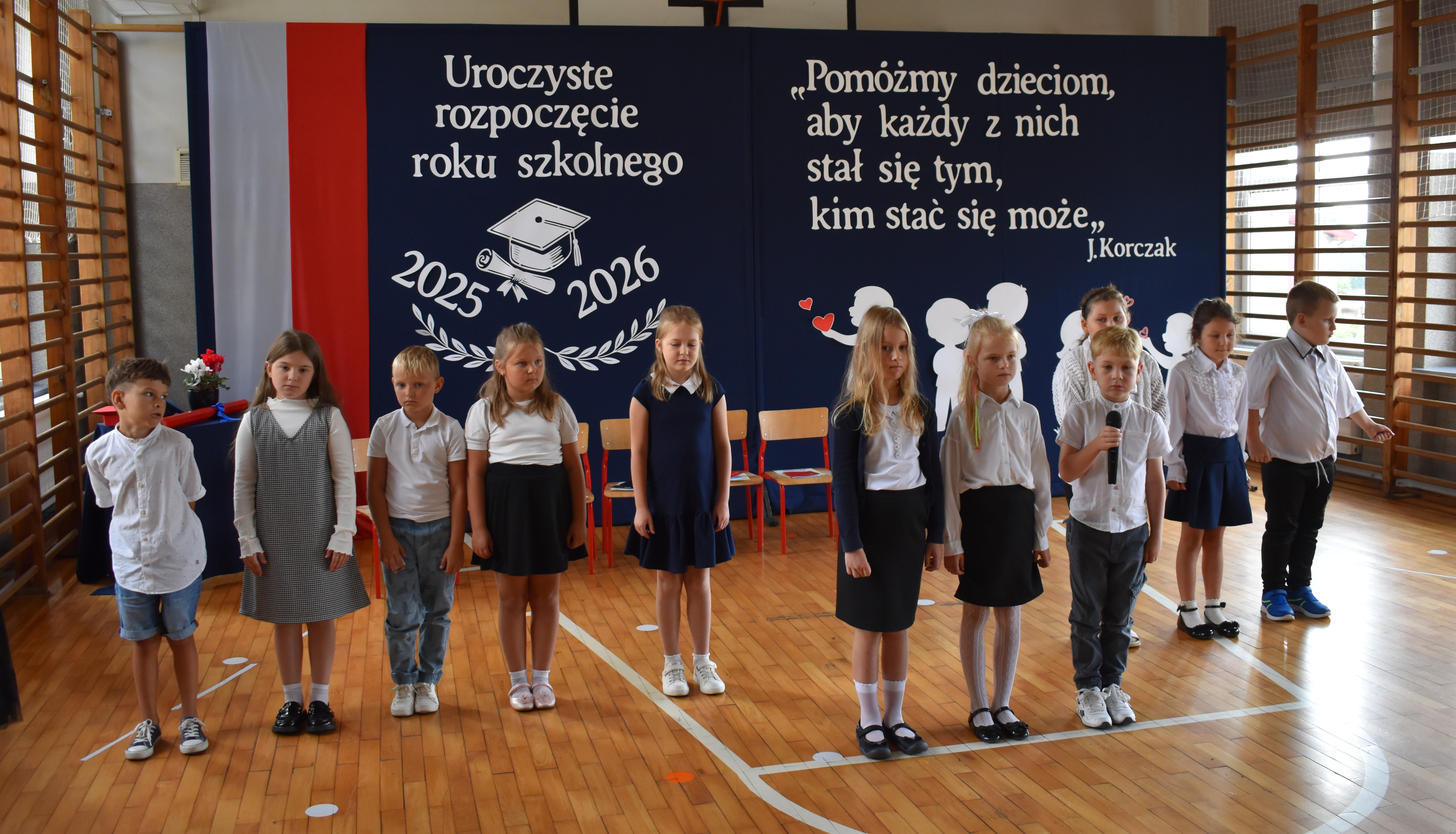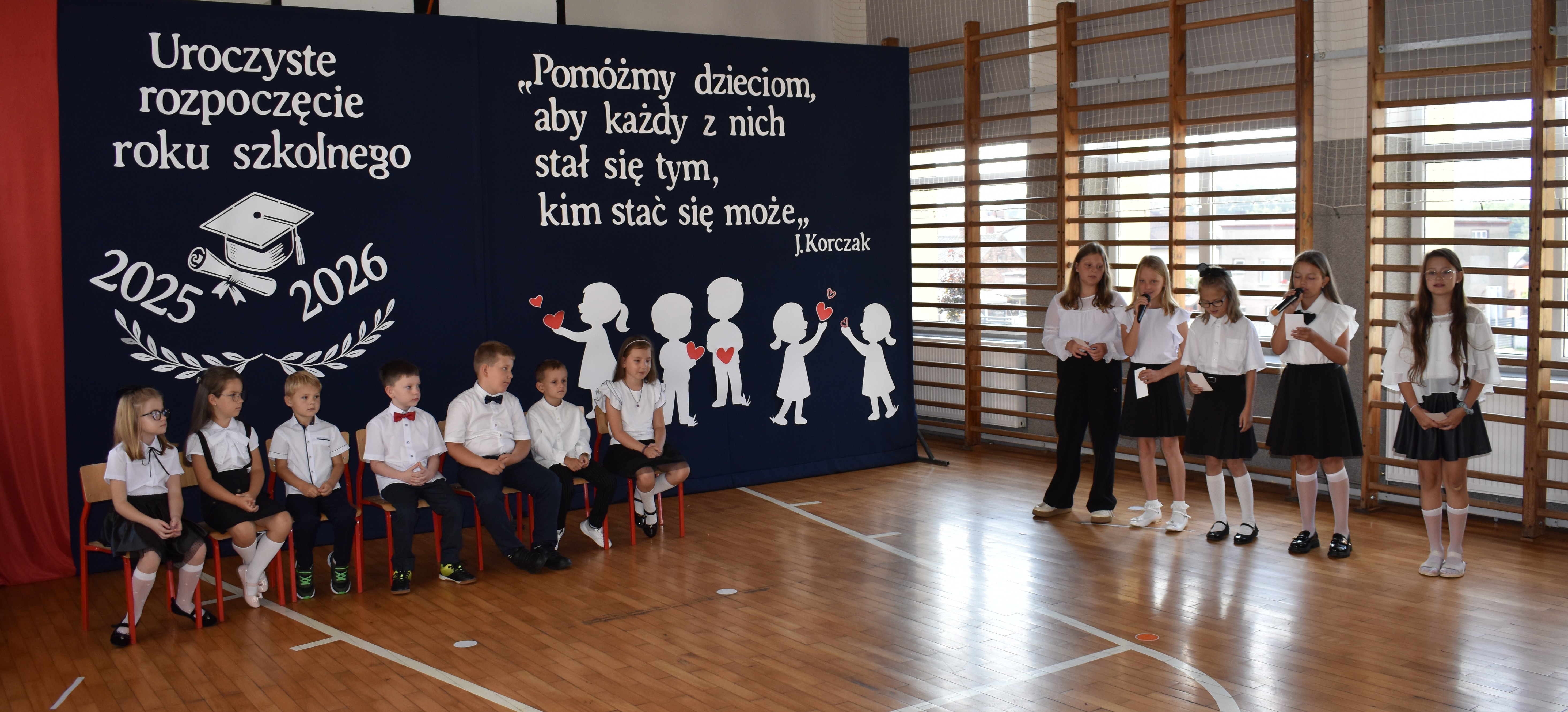 Nowy rok szkolny rozpoczął się uroczystym apelem, który odbył się na sali gimnastycznej. Zebrali się na nim uczniowie, nauczyciele, rodzice oraz dyrekcja szkoły. Po wprowadzeniu pocztu sztandarowego i odśpiewaniu hymnu narodowego najmłodsi uczniowie zaprezentowali krótki występ artystyczny. Recytowali wiersze i śpiewali piosenki czym wzruszyli oraz rozbawili zgromadzonych gości. Starsze klasy również przygotowały występ, witając pierwszaków w szkolnej społeczności i życząc im powodzenia.