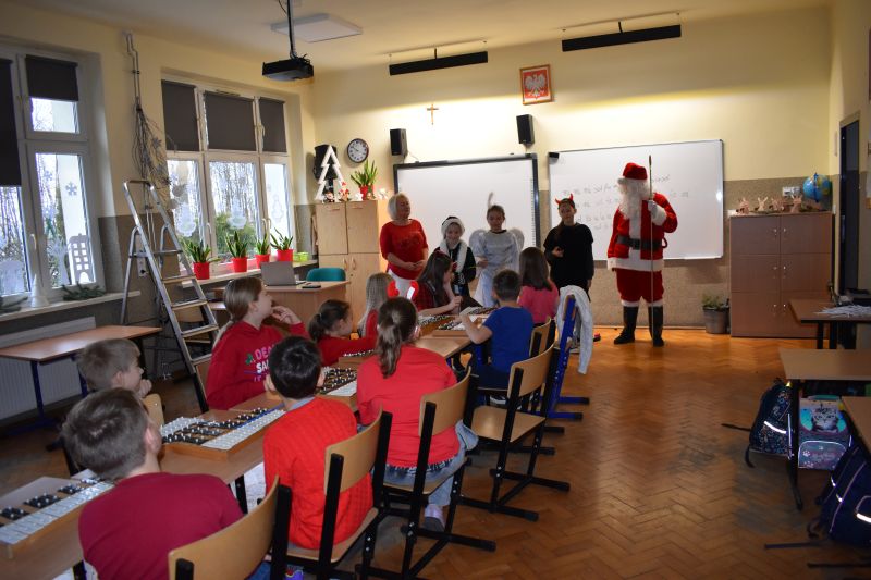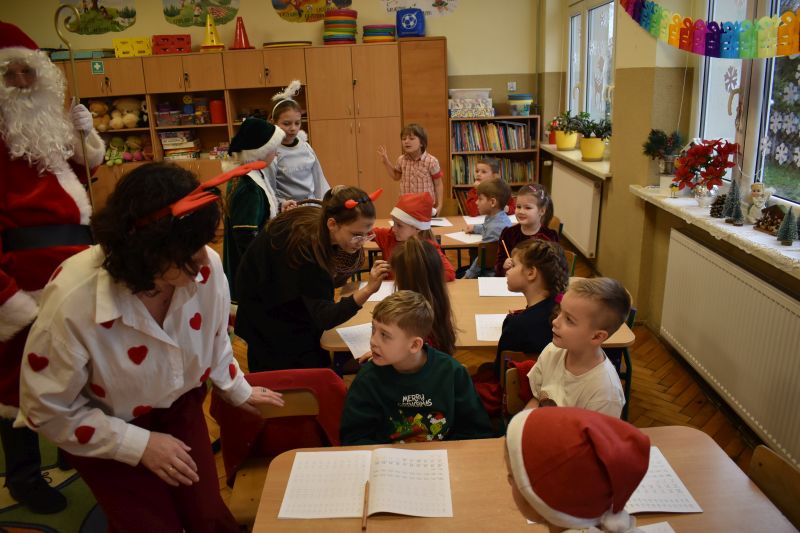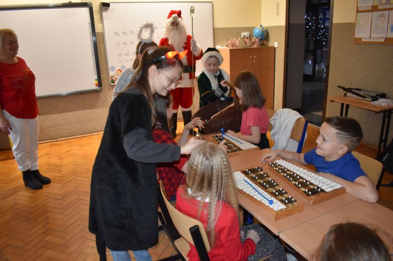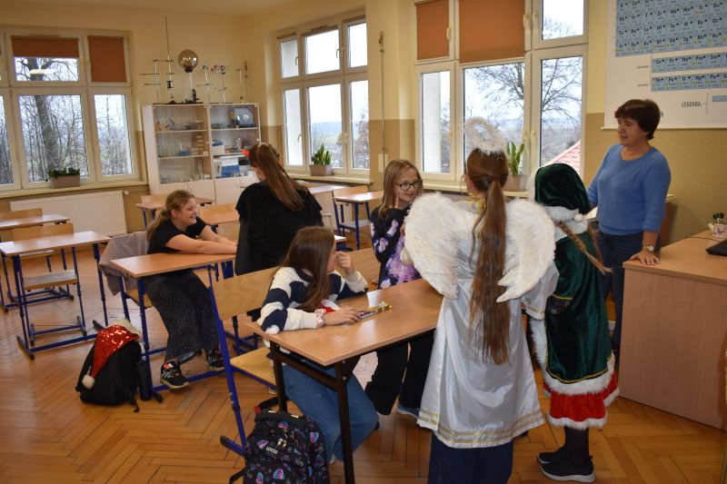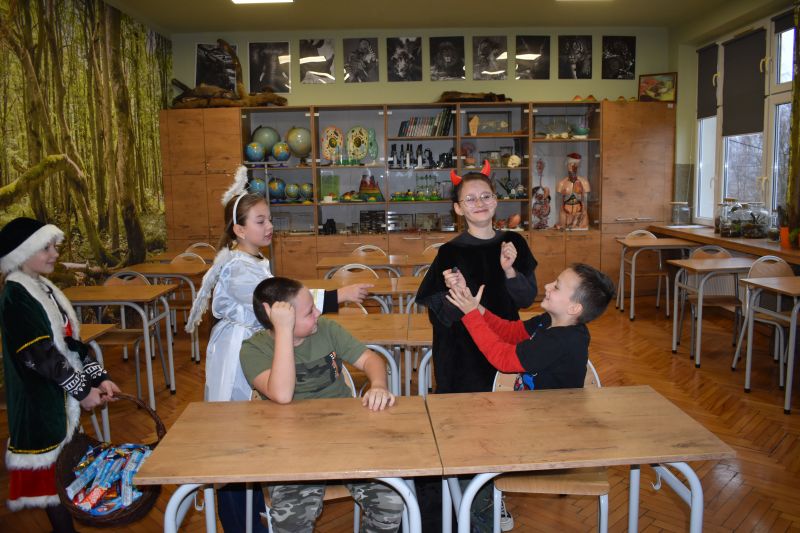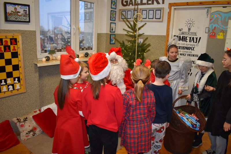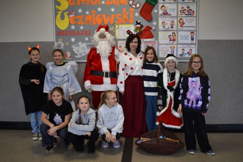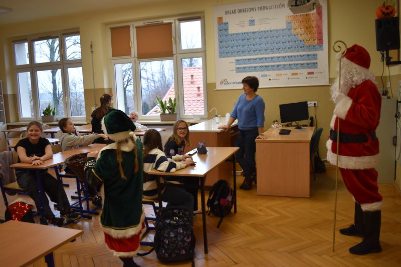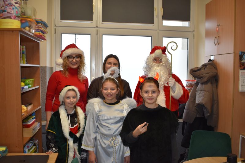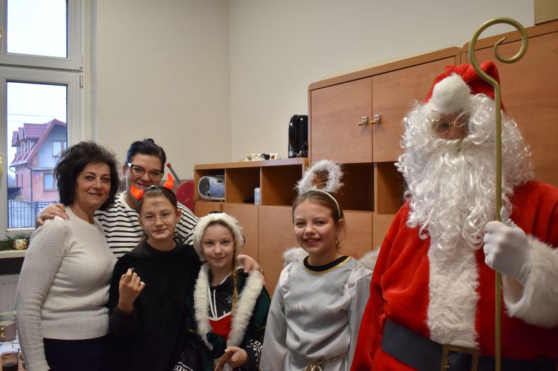 Grzeczne pociechy – zarówno te najmłodsze, jak i starsi uczniowie – w nagrodę za swoje wzorowe zachowanie zostały obdarowane słodkim upominkiem. Natomiast wszystkie łobuzy zostały naznaczone przez Diabełka — na ich policzkach pozostawił ślady węgla na znak, że muszą się poprawić!