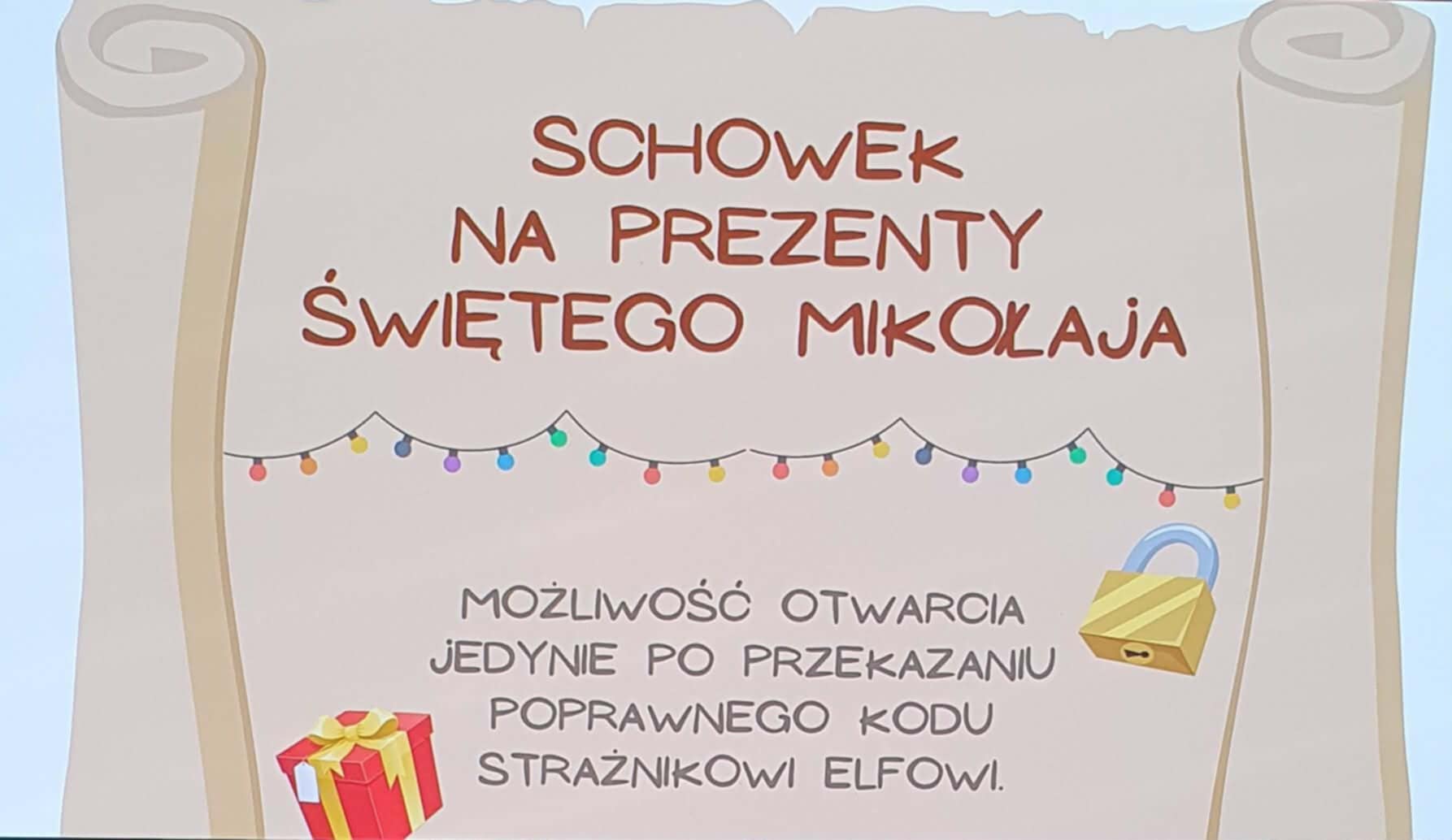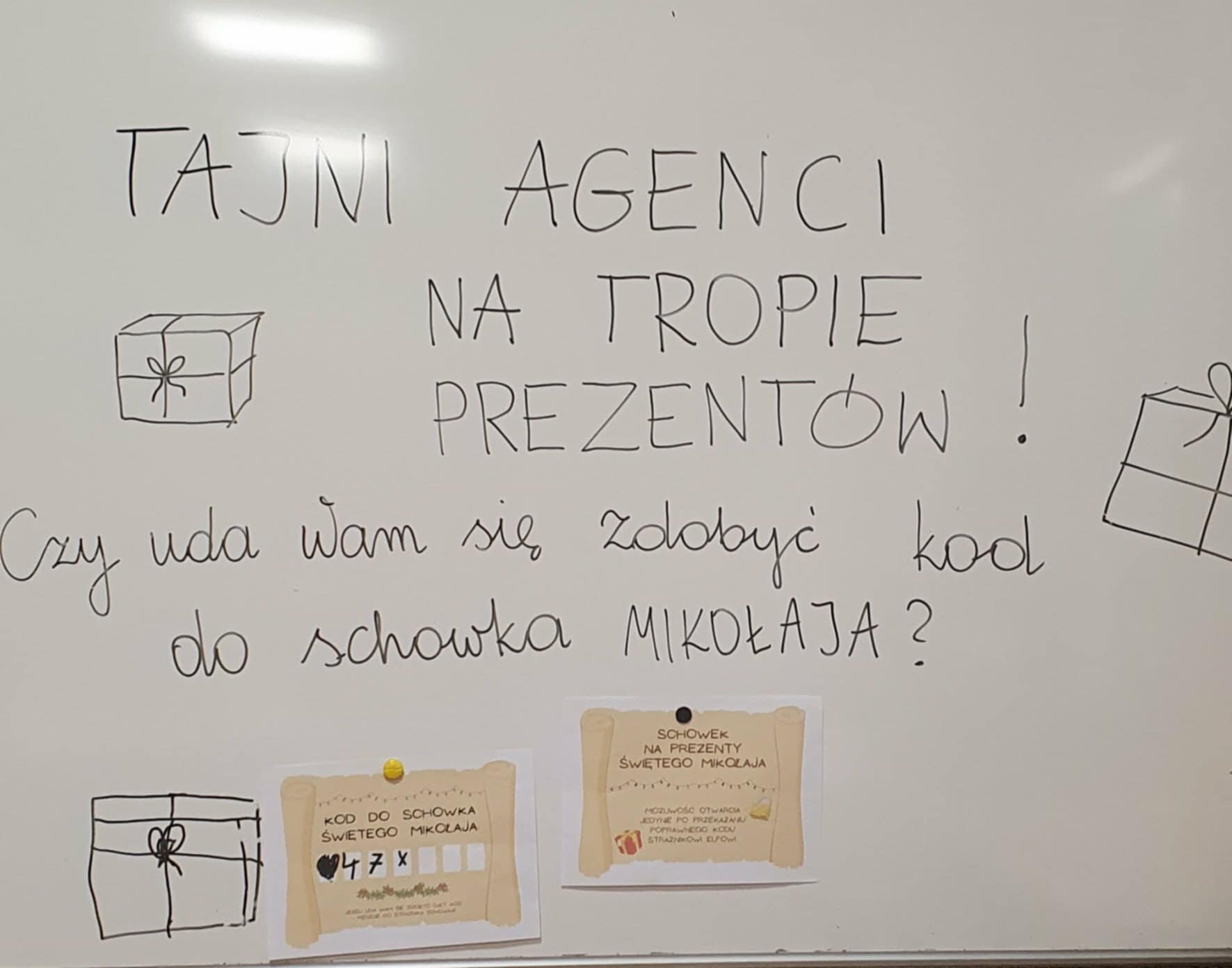 5 grudnia klasa I wzięła udział w ważnej misji " TAJNI AGENCI NA TROPIE PREZENTÓW ". Tym razem MIKOŁAJ potrzebował naszej pomocy. Sprawa była dość alarmowa, MIKOŁAJ zapomniał najważniejszy kod do swojego schowka. Pytanie, czy uda się pierwszakom zdobyć wszystkie elementy szyfru i dostać do prezentów ?