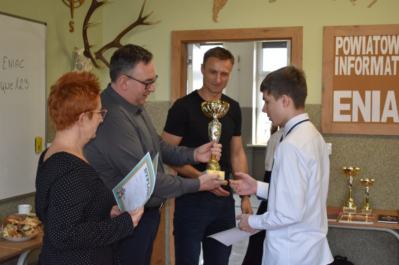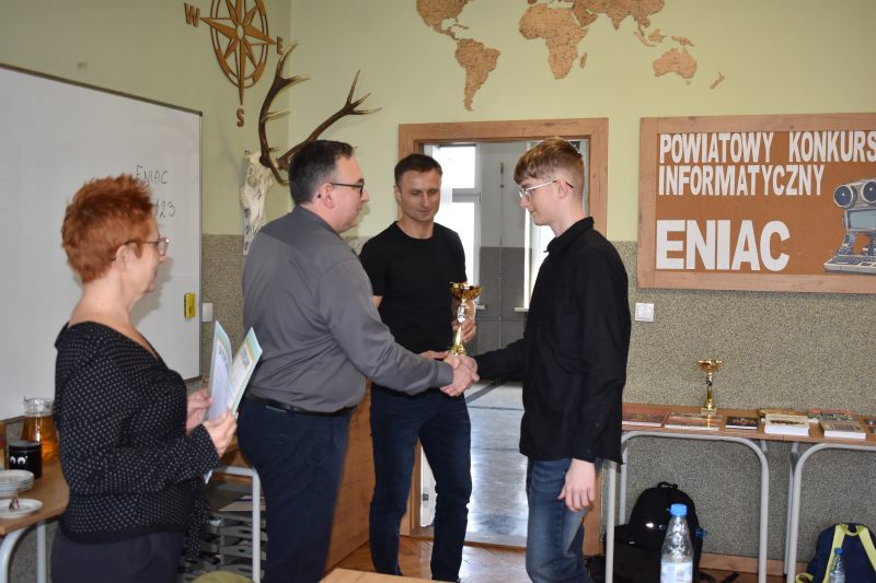 W murach naszej szkoły odbyła się VII edycja Powiatowego Konkursu Informatycznego ENIAC, który stanowi owoc wieloletniej i owocnej współpracy ze Szkołą Podstawową im. Stanisława Ligonia w Truskolasach. Zgodnie z przyjętą tradycją, obie placówki co roku naprzemiennie pełnią rolę gospodarza, co pozwala na stałą integrację młodych pasjonatów technologii z całego powiatu.