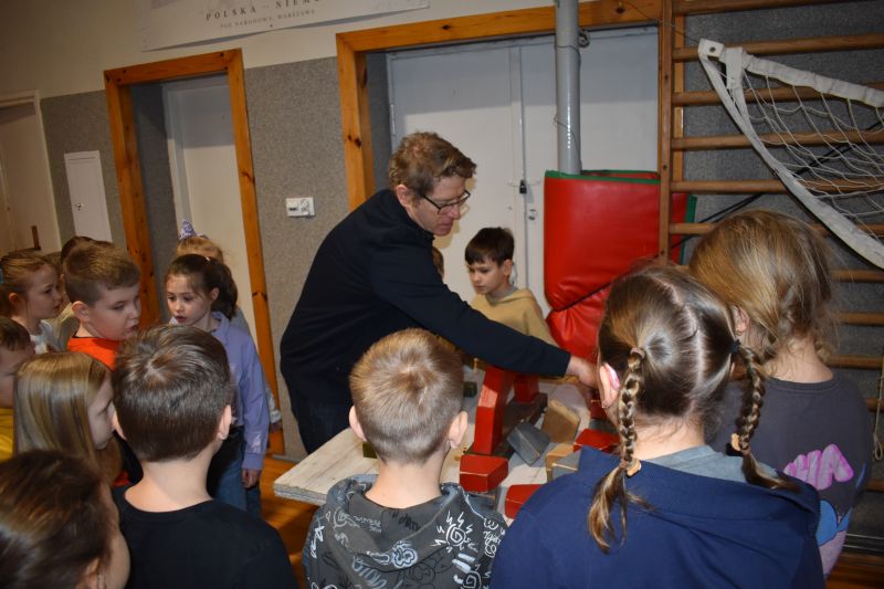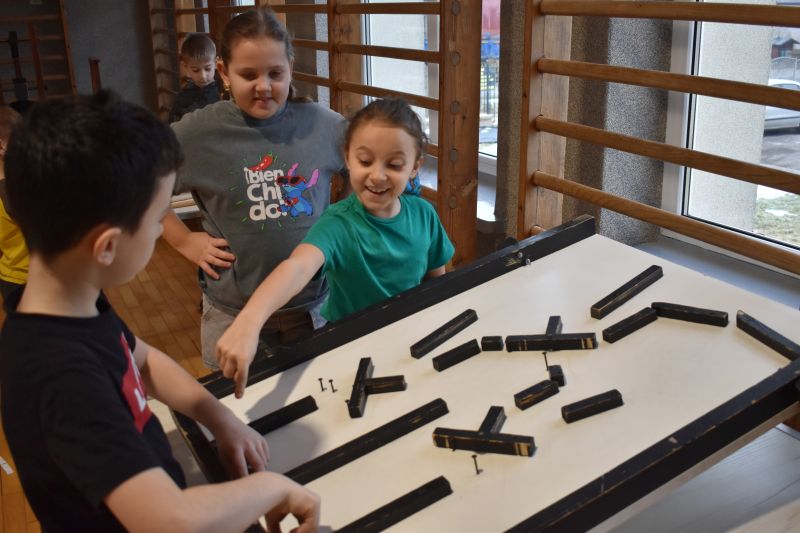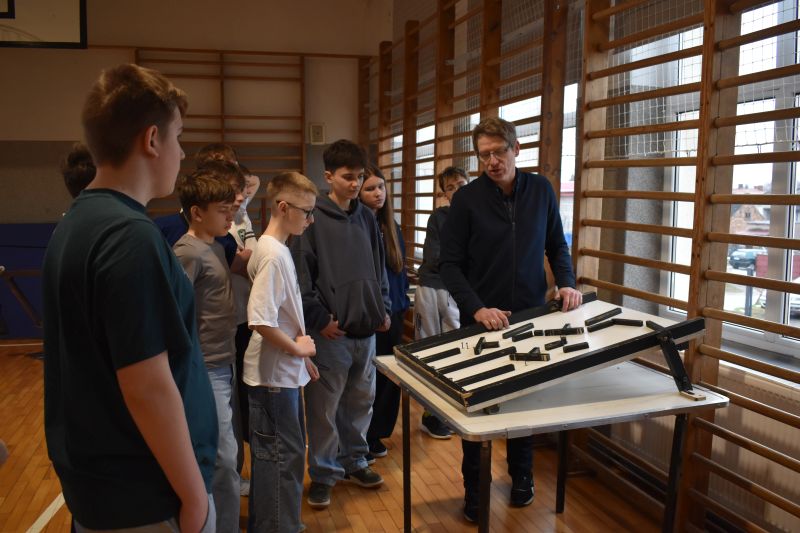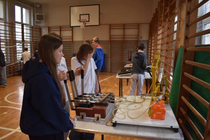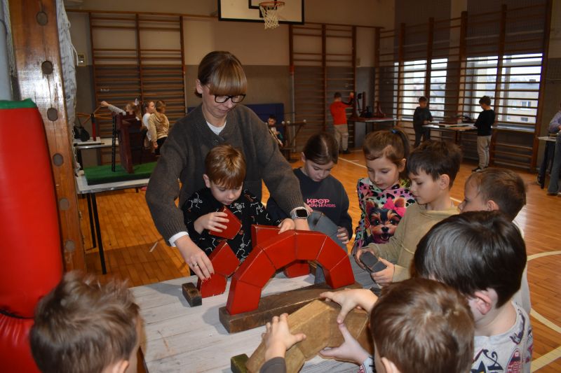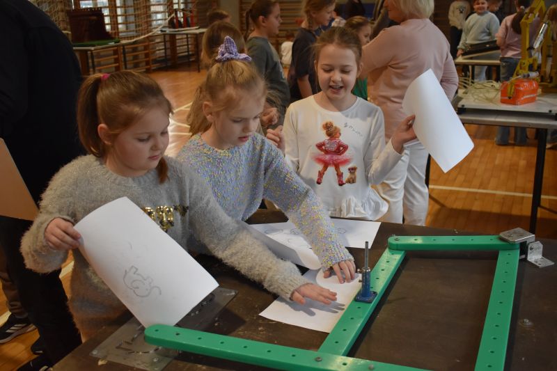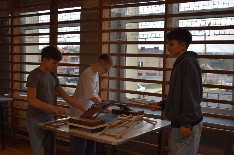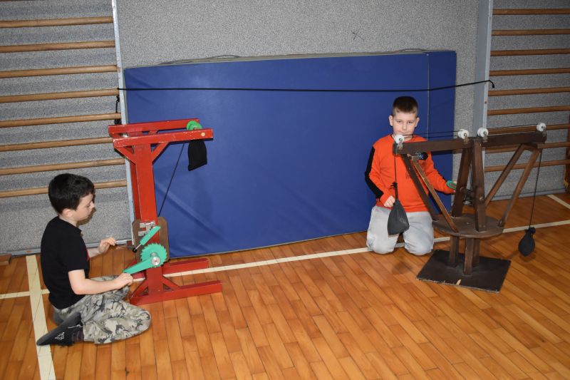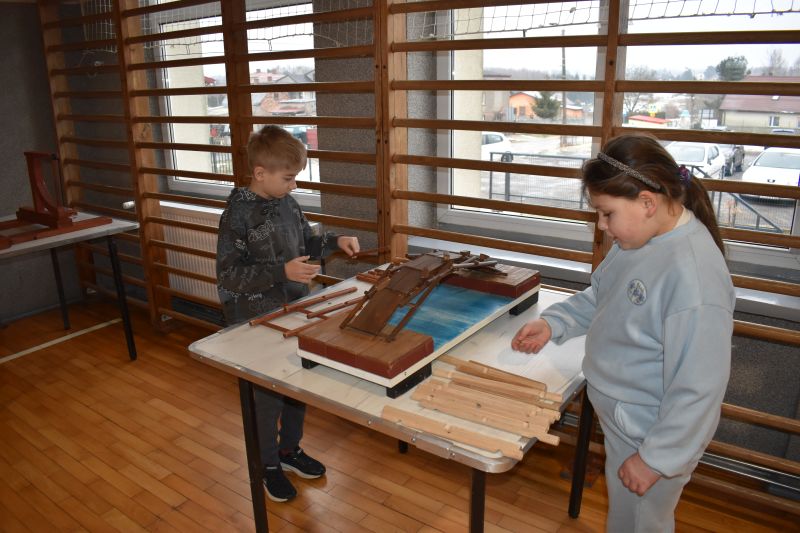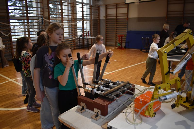 Najwięcej emocji wzbudziła jednak część warsztatowa. Każdy uczeń miał okazję samodzielnie przeprowadzić doświadczenia z modelami, badając mechanizmy działania dźwigni, przekładni czy mostów zwodzonych. Była to doskonała okazja, by spróbować swoich sił w technice, wykazać się kreatywnością oraz sprawdzić umiejętność logicznego myślenia. Lekcja ta udowodniła, że nauka przez doświadczenie to najskuteczniejsza droga do zrozumienia świata.