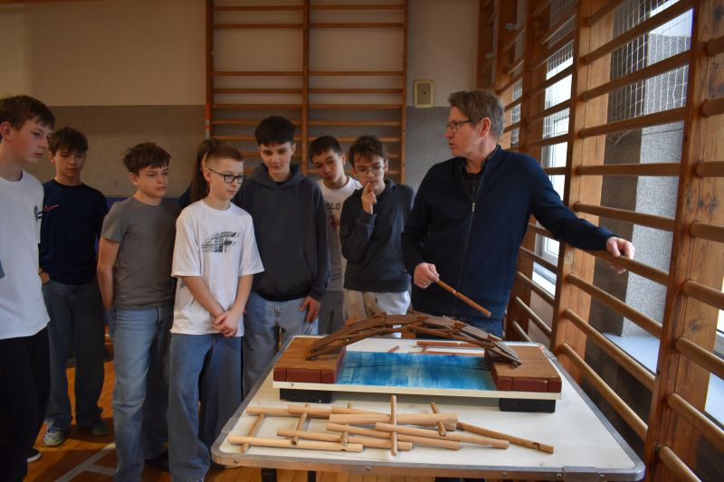 Spotkanie rozpoczęło się od fascynującej prezentacji sylwetki samego Leonarda da Vinci. Prowadzący przybliżył uczniom nie tylko jego największe dzieła malarskie, ale przede wszystkim wizjonerskie dokonania inżynieryjne. Centralnym punktem warsztatów była analiza techniczna przygotowanych replik. Na podstawie misternie wykonanych modeli uczniowie mogli prześledzić, jak projekty sprzed pięciuset lat znajdowały swoje zastosowanie i jak funkcjonowały w praktyce.
